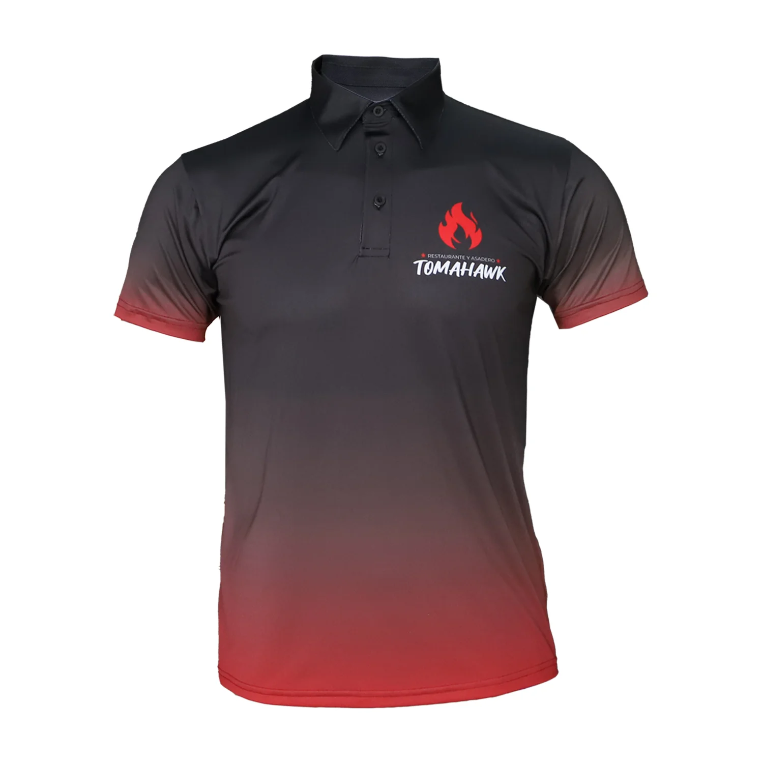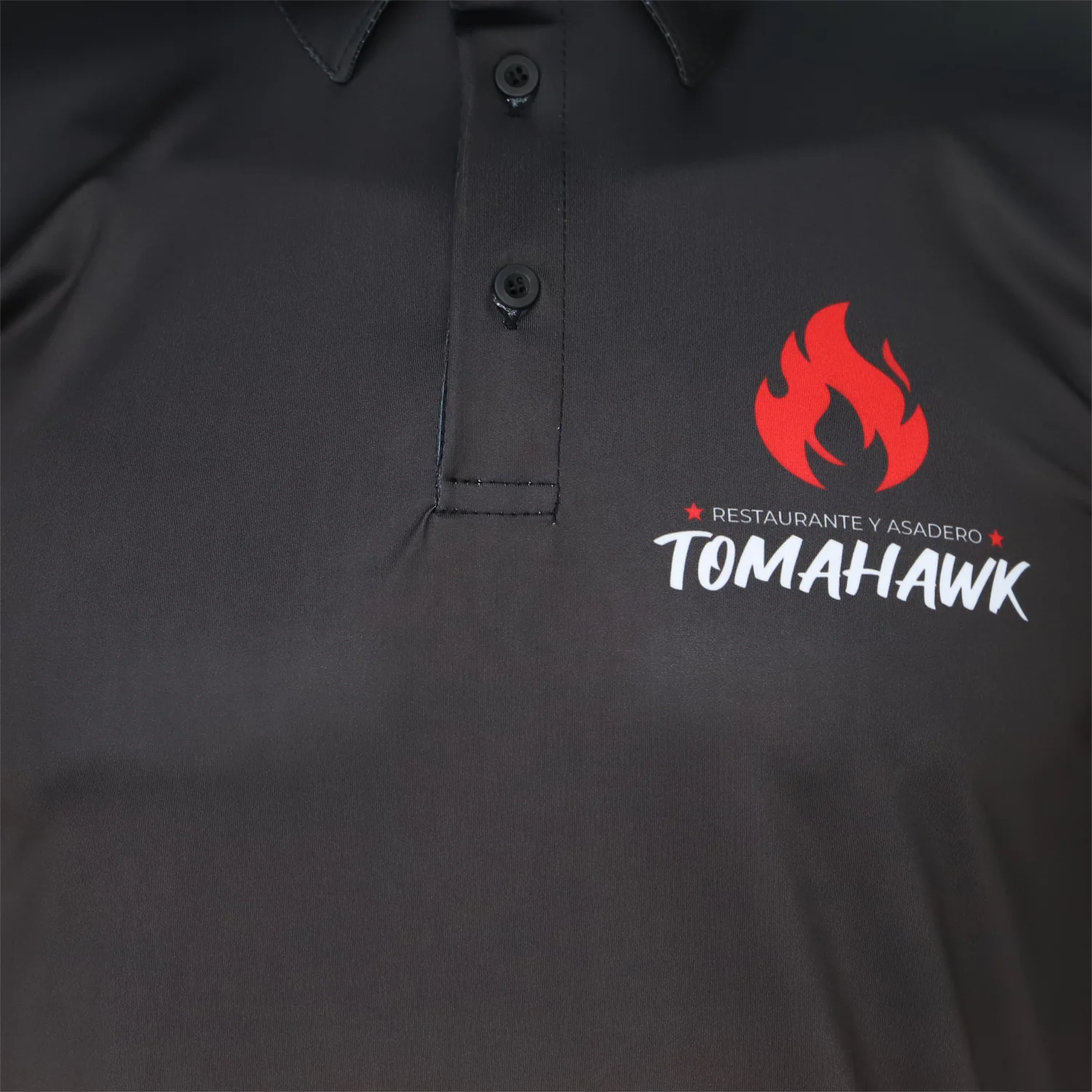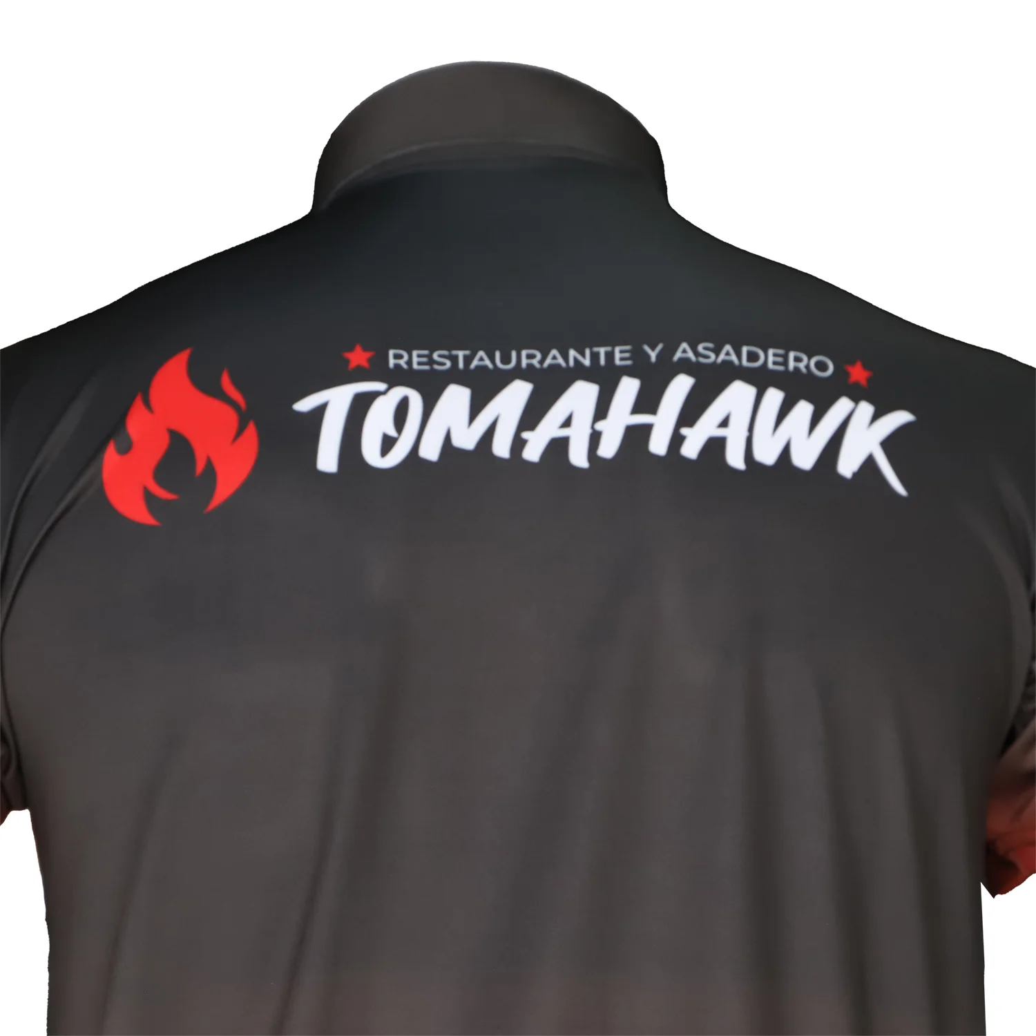 Referee desarrolló un pedido de camisetas polo corporativas para el restaurante Tomahawk, diseñadas para proyectar una imagen profesional y moderna. Se elaboraron dos modelos diferentes: uno con diseño 100% sublimado y otro en color negro con aplicación en vinil DTF. Ambos incorporan los logotipos corporativos en el pecho y en la parte superior de la espalda, reforzando la identidad del restaurante.